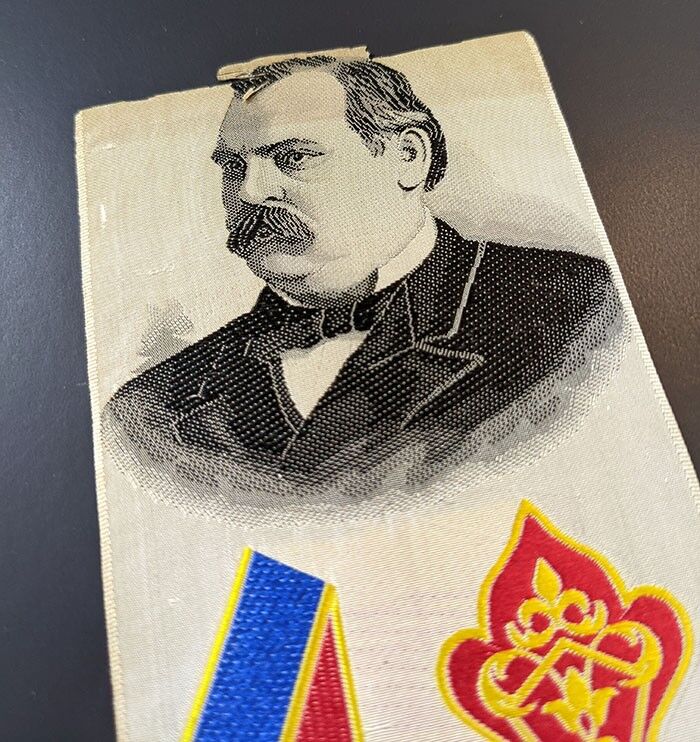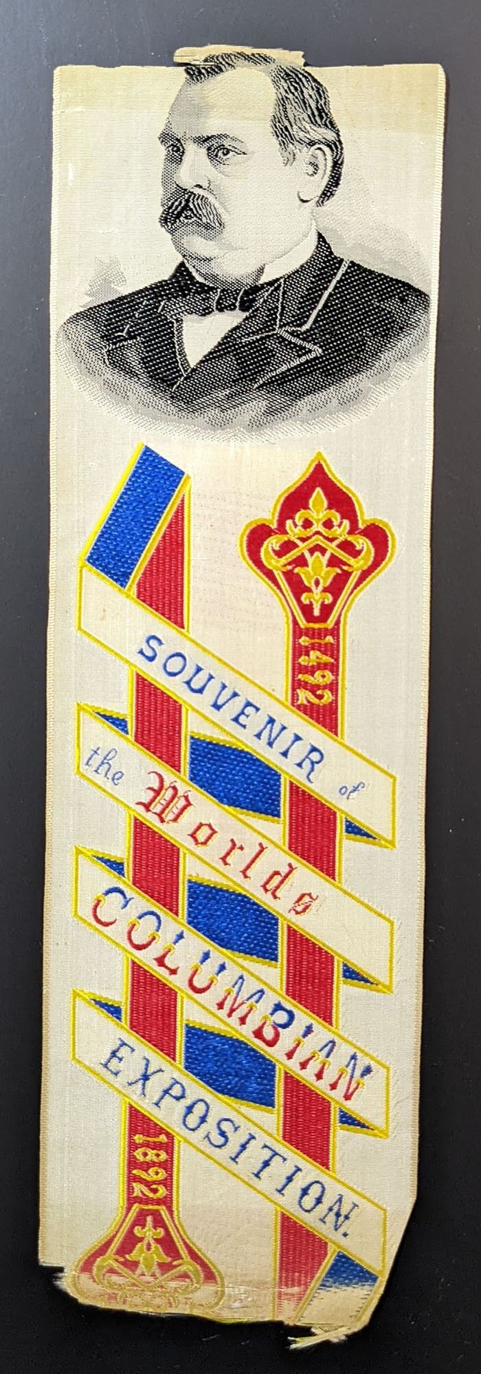 1492-1892 COLUMBIAN EXPOSITION Grover Cleveland STEVENGRAPH? Bookmark Ribbon