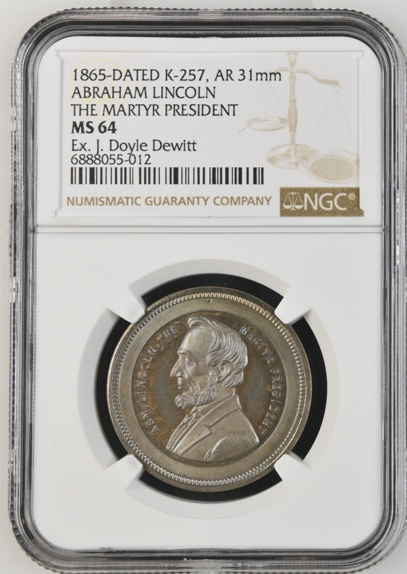 WOW!! MS64 Toned SILVER Martyr President King-257 ABRAHAM LINCOLN NGC Medal RARE